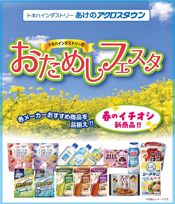 皆様お待たせしました! イチオシ!おためしフェスタ開催!! トキハインダストリーと一流メーカーが おすすめ商品を直接ご紹介する大好評イベント 「イチオシ!おためしフェスタ」を開催いたします!! 入場無料ですので是非ご来店ください‼ とき:4月15日(水) ところ:あけのアクロスタウン1階センターコート特設会場・1階新館通路