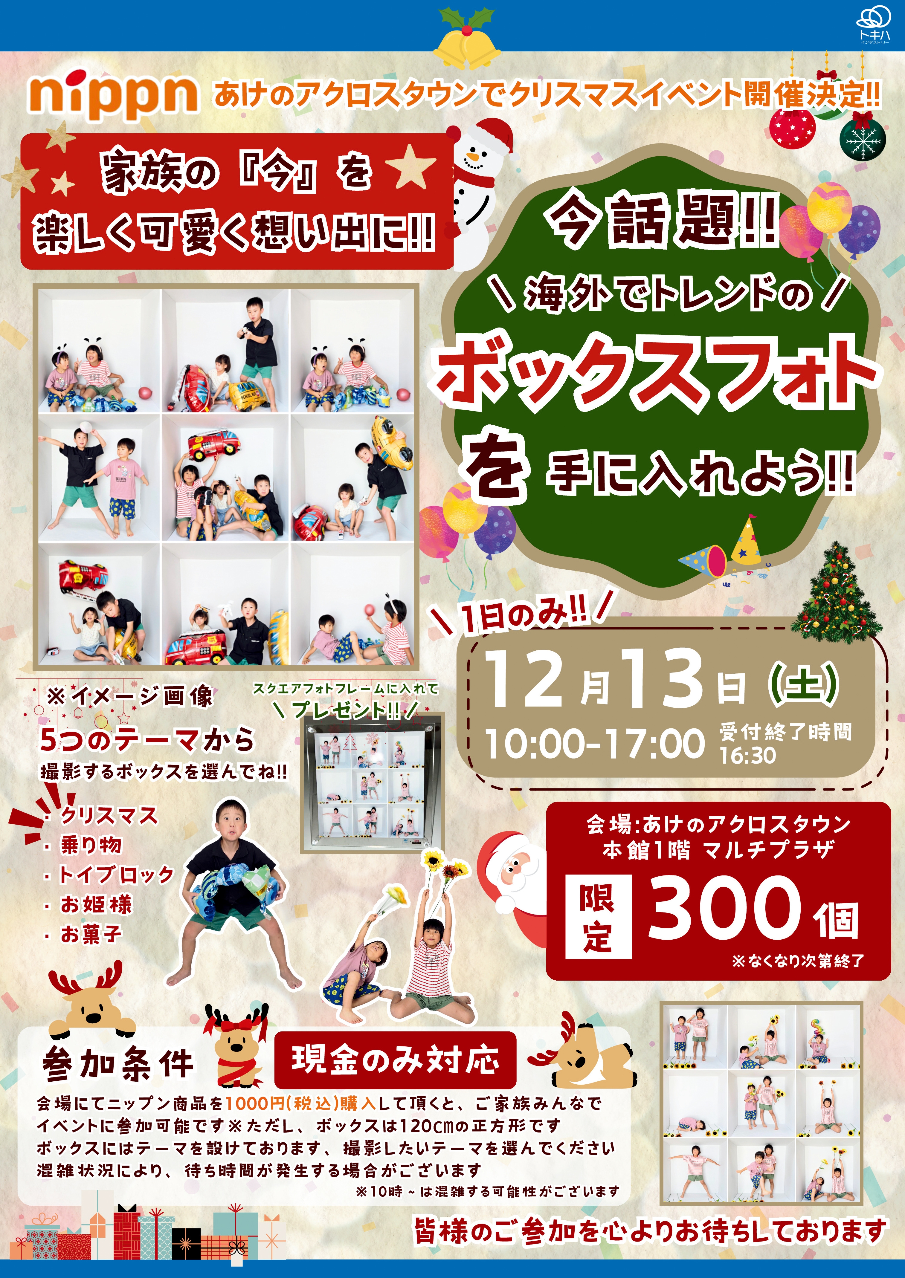 ※ただし、ボックスは120㎝の正方形です。ボックスにはテーマを設けております。撮影したいテーマを選んでください。混雑状況により、待ち時間が発生する場合がございます。
