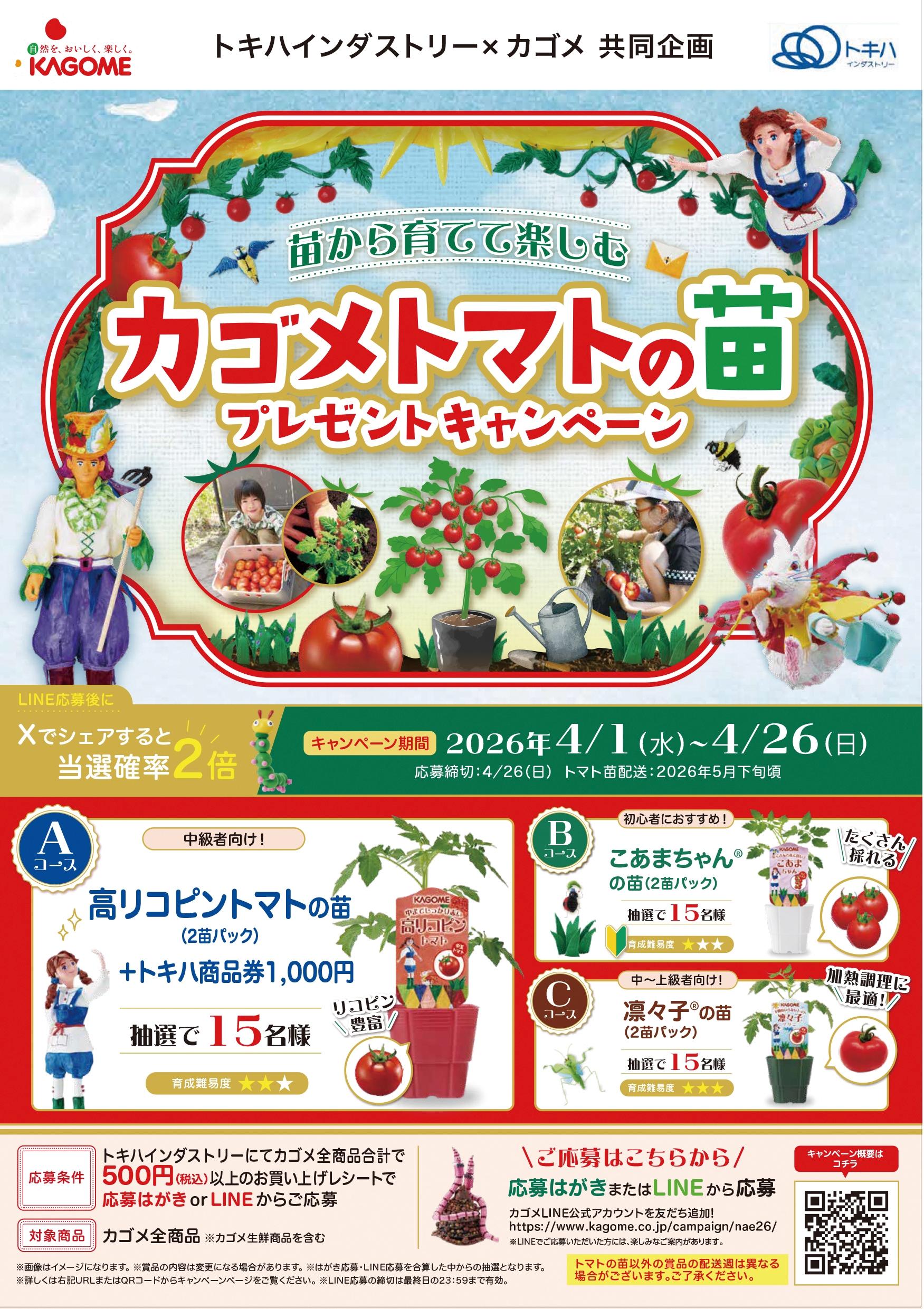 トマトの苗以外の賞品の配送週は異なる場合がございます。ご了承ください。